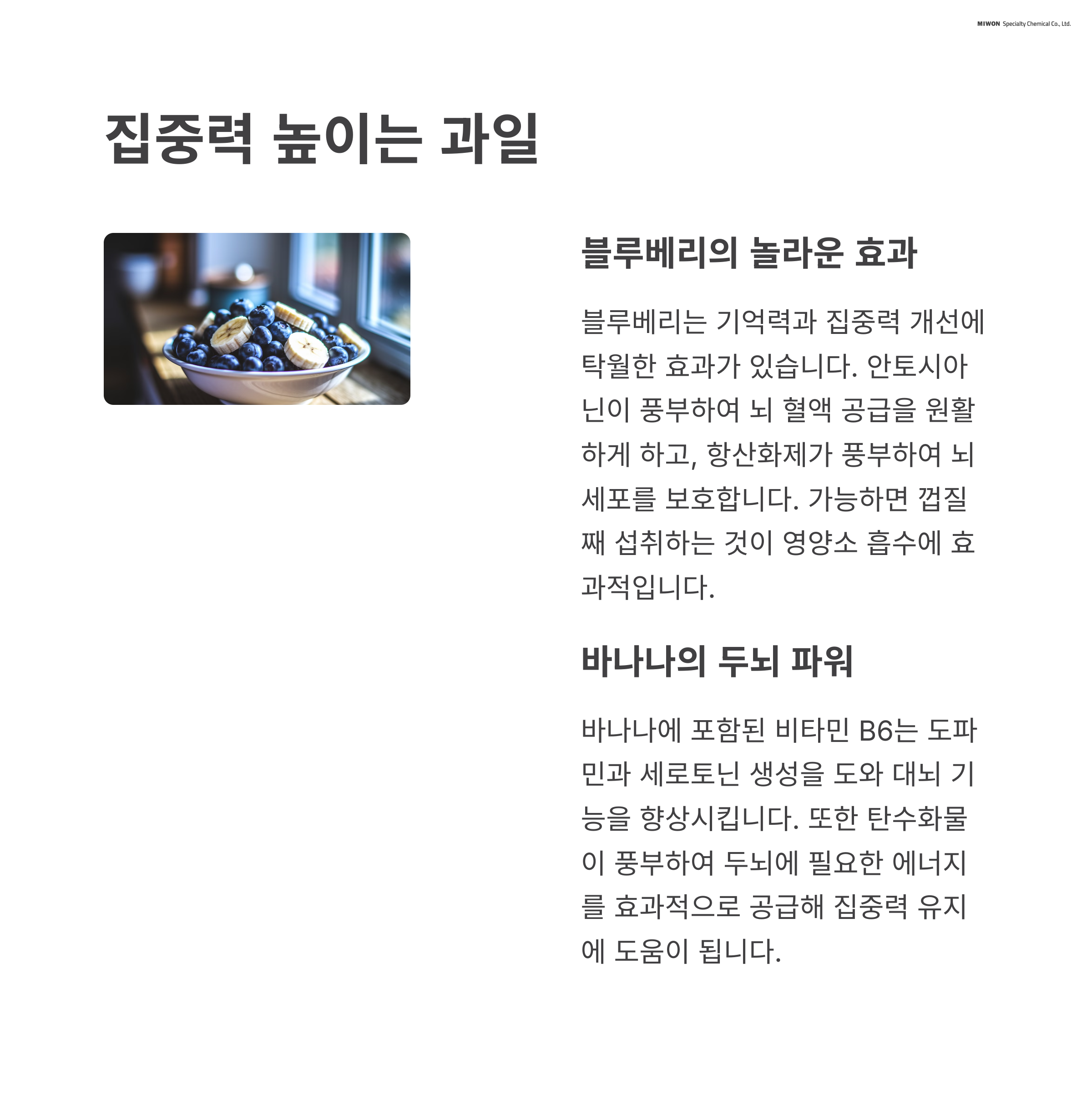 집중력 향상에 좋은 영양소는 무엇인가요?