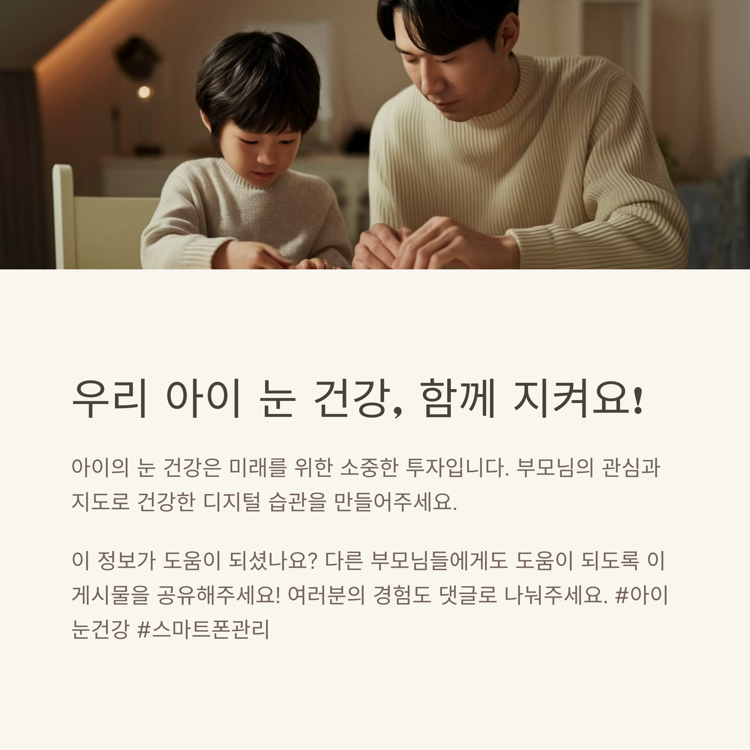 오늘은 우리 아이들의 소중한 눈 건강을 지키기 위해 부모님이 꼭 알아야 할 스마트폰 사용 수칙과 눈 건강 팁들을 정리해보았어요.