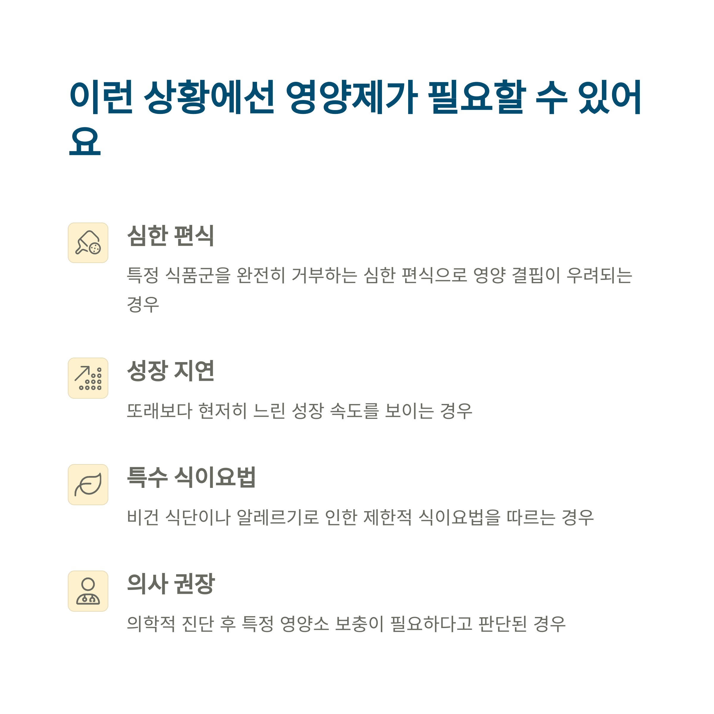 - 의사의 권장에 따라 특정 영양소 보충이 필요한 경우