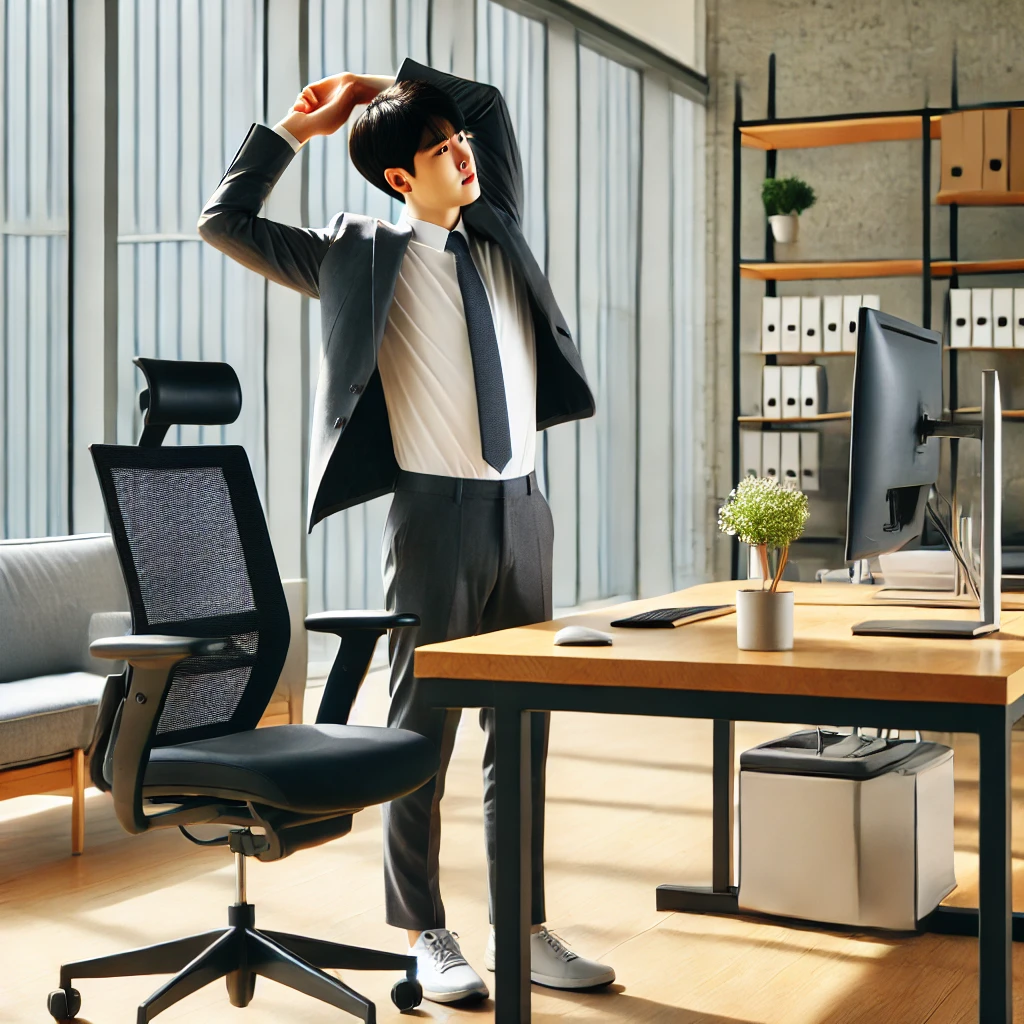 - 1시간마다 자리에서 일어나 가볍게 스트레칭하기