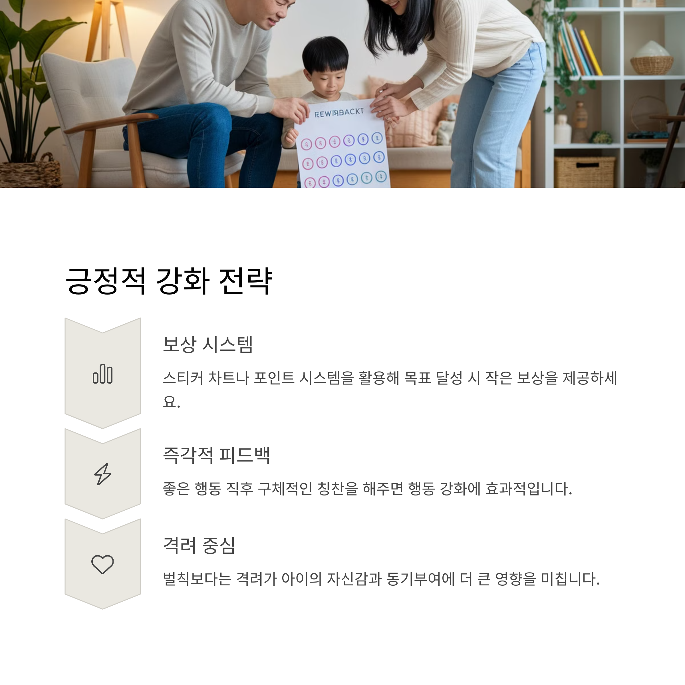 칭찬과 보상으로 바람직한 행동을 이끌어 주세요.